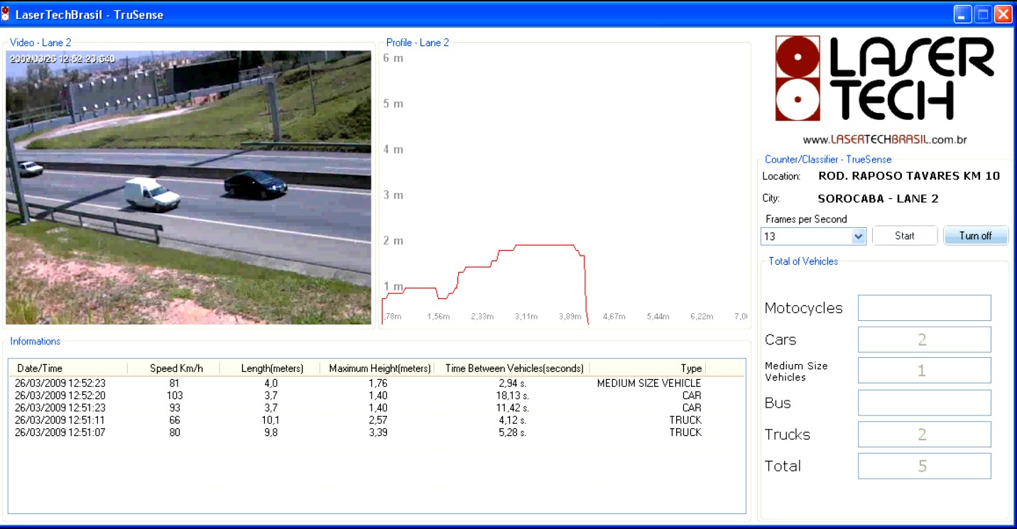 通过分析纵向车型轮廓、车高、车速、车头时距、车头间距、行车方向数据,得出最精确的车长及车速。