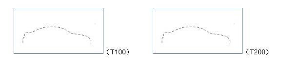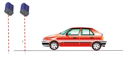 T100和与其内部相连的T200是2组独立并且互相有通讯的高频(25000HZ)激光测距传感器。其使用固定间距(750mm)的安装架做刚性连接,分别交替发射垂直于地面(见图1)。当无车时,系统测量高度为传感器距离地面的高度(一般为6~7米),当此时有车辆进入检测区域后,距离值发生变化,此时,会在两个传感器先后形成一个基于车辆纵向轮廓的这一物理量的时间-距离的曲线(见图2)。