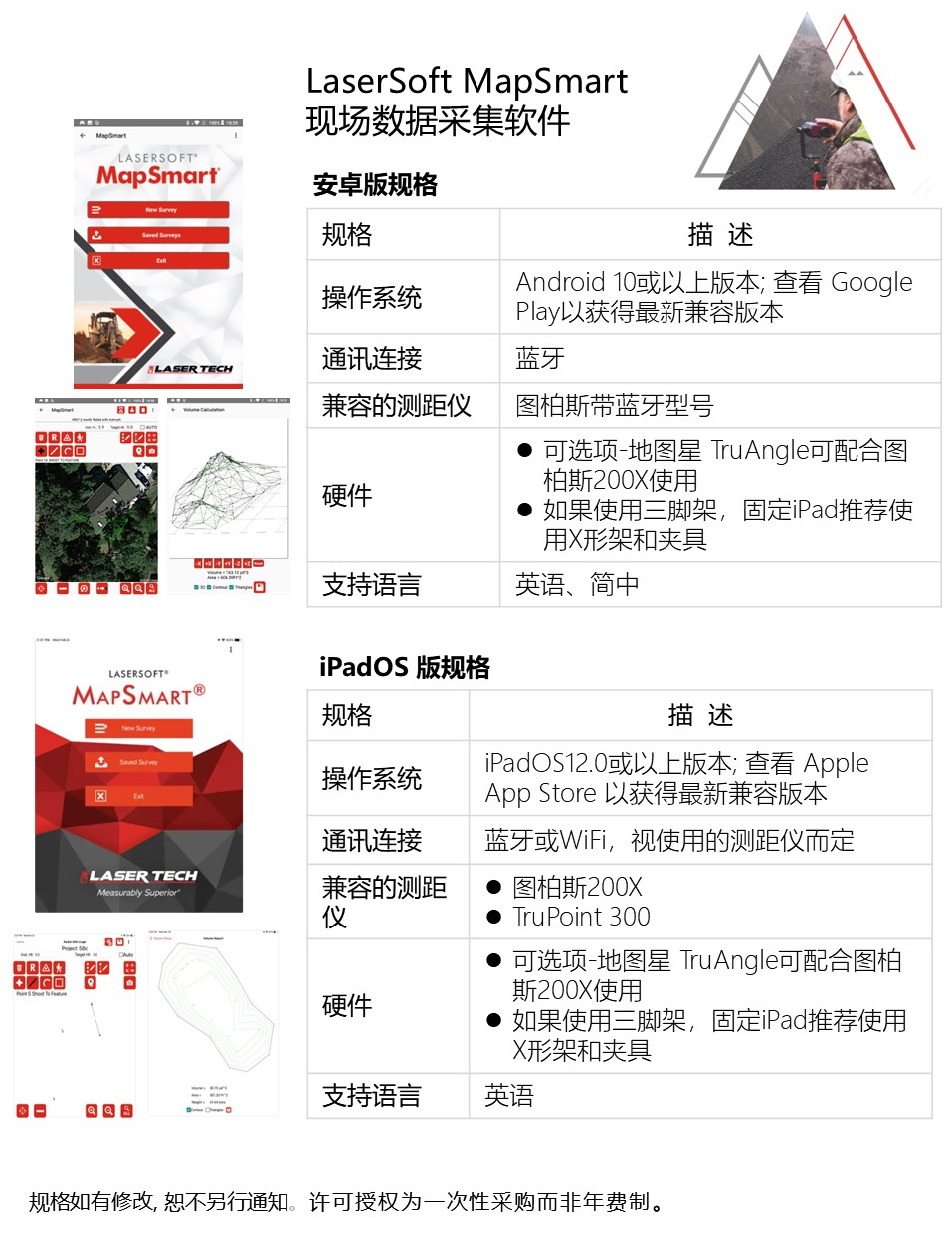 为每一测量提供像方位角极坐标法一样的优点。你可以获得更高的水平角精确度并且不受磁场干扰的影响。(需要MapStar TruAngle角度编码器配合)