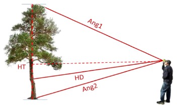 现在您有了新的方法,就是使用TruPulse测距测高仪的“HT”三点测高功能。 面对林地中众多干扰,无法清晰识别树的顶底时,可灵活利用“HT”三点测高功能只需瞄准树干上任意可见部位,再瞄准树木顶部和底部所在测出顶角和底角,而不用触发激光。即可得到树木高度,无惧任何干扰。